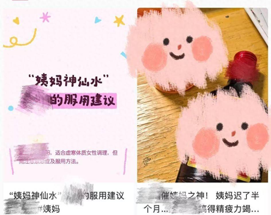 社交平台上掀起一股将某款保健酒奉为“姨妈神仙水”的风潮。社交平台截图