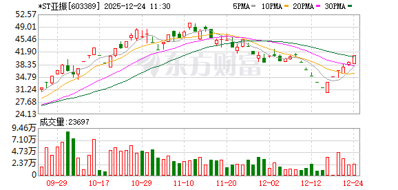 *ST亚振再度涨停,6个交易日内录得4个涨停,累计涨幅为29.51%,累计换手率为6.07%。截至10:20,该股今日成交量181.18万股,成交金额7324.78万元,换手率0.69%。最新A股总市值达107.60亿元。