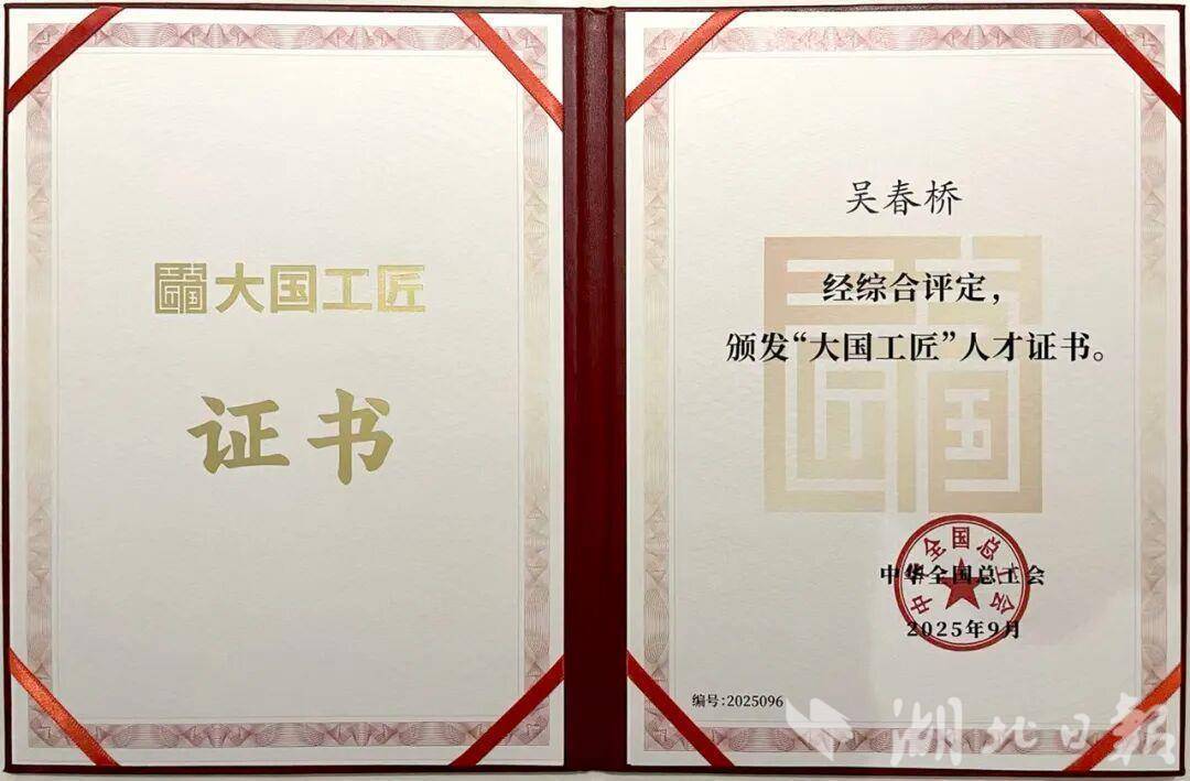 从全省范围内来看,除吴春桥外,中国兵器工业集团江山重工研究院有限公司数控操作工周德民、中国石化江汉油田分公司江汉采油厂维修一班采油工张义铁、中国航天科工湖北三江航天红林探控有限公司机加车间数控车工邹峰、湖北三宁化工股份有限公司智能工厂推进办公室主任杨文华、中国铁路武汉局集团有限公司武昌客车车辆段武昌运用车间生产技术班质检员黄望明、中铁大桥局集团第二工程有限公司工程技术服务中心测量组组长秦环兵、中铁十一局集团第三工程有限公司中心试验室主任陈永胜等7人也被认定为2025年“大国工匠”人才。
